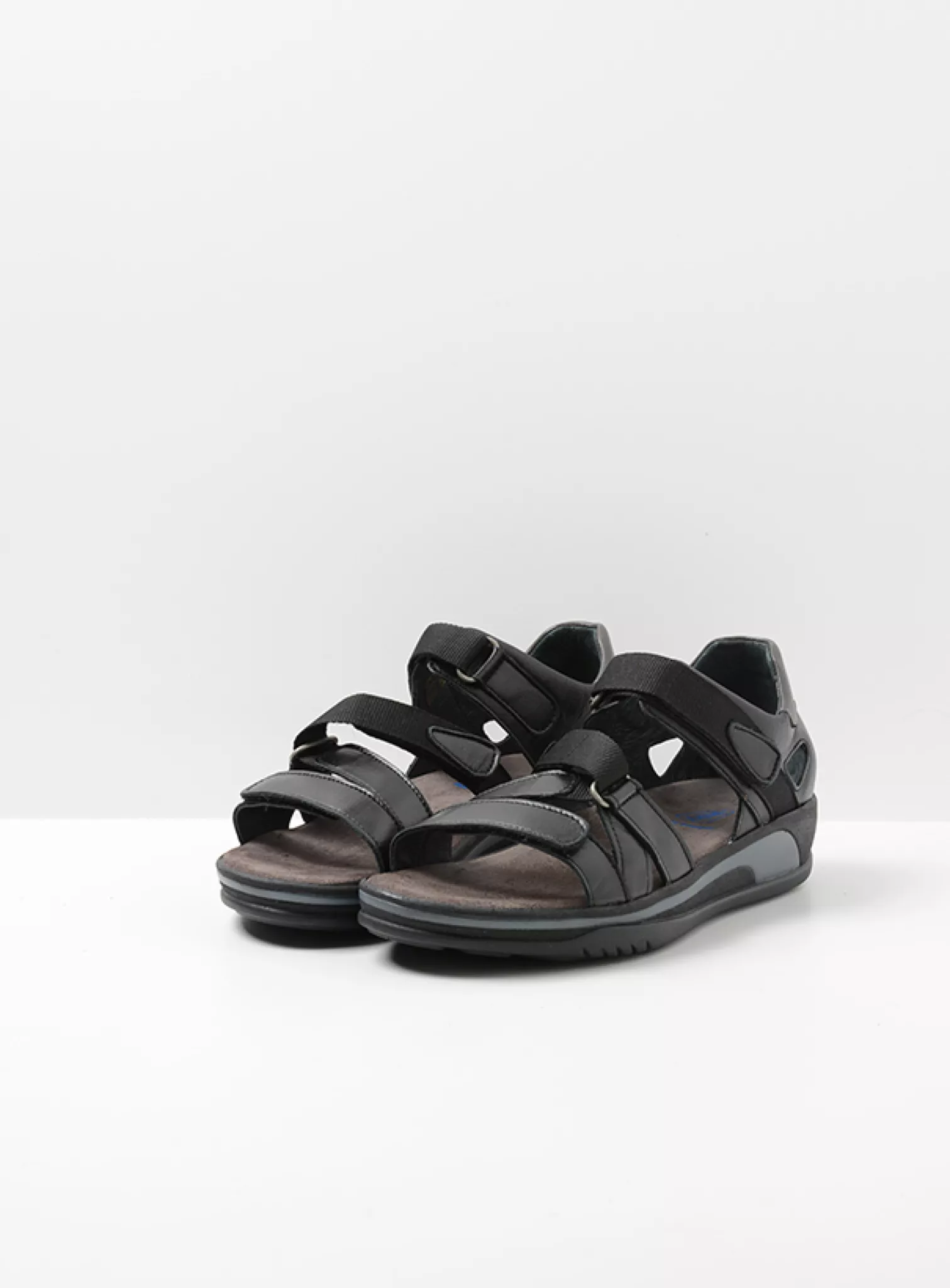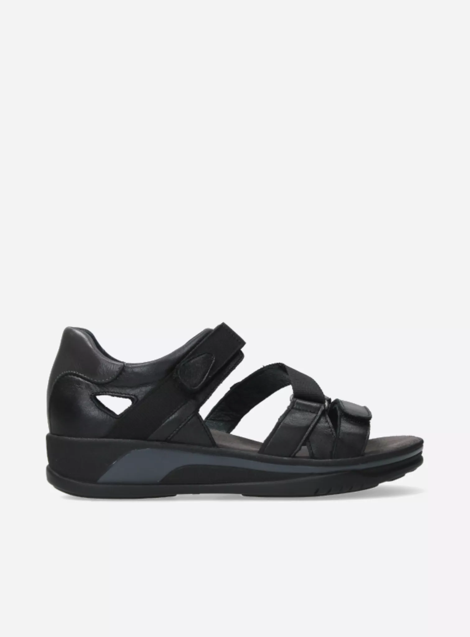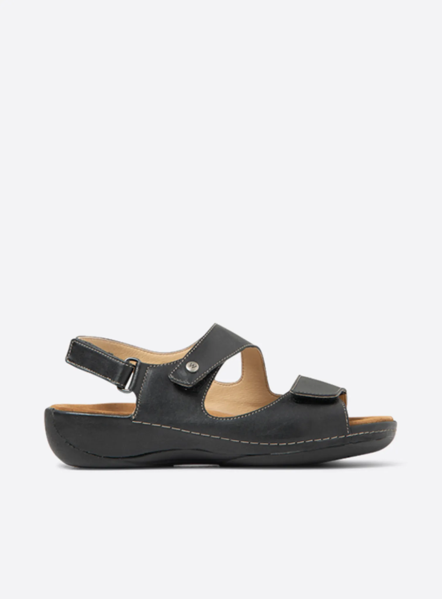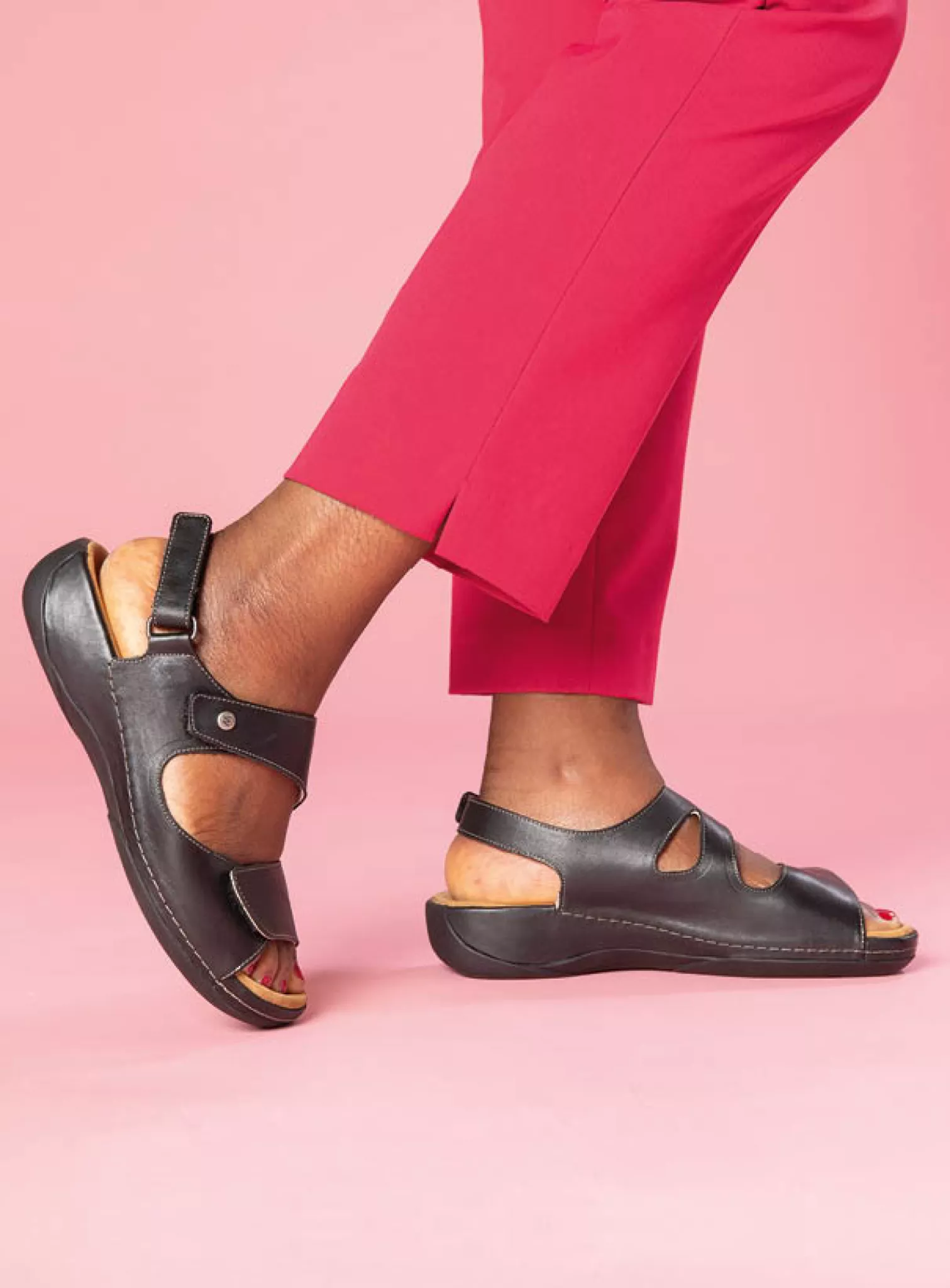 Wide fit adjustable sandal with fixed footbed