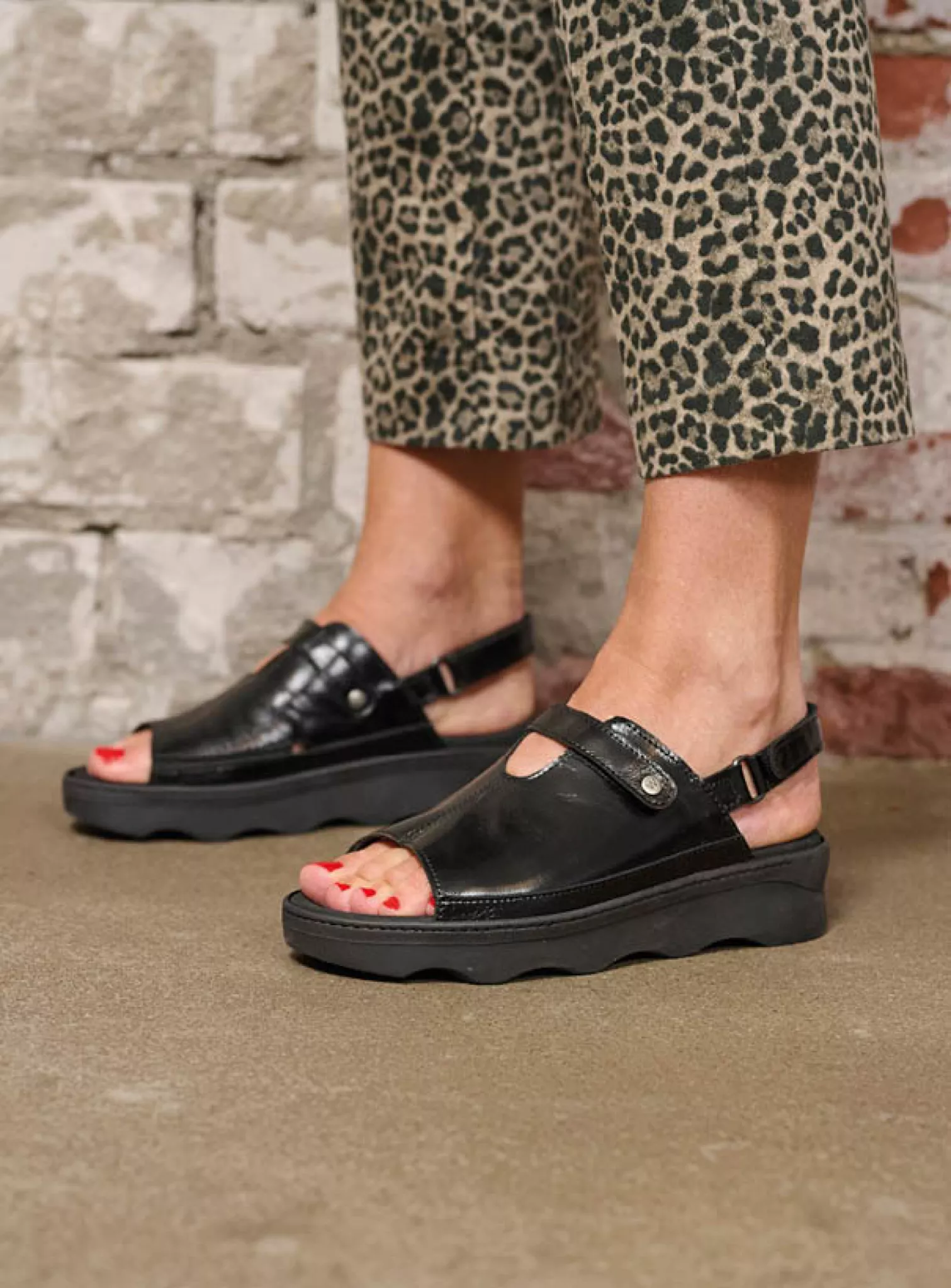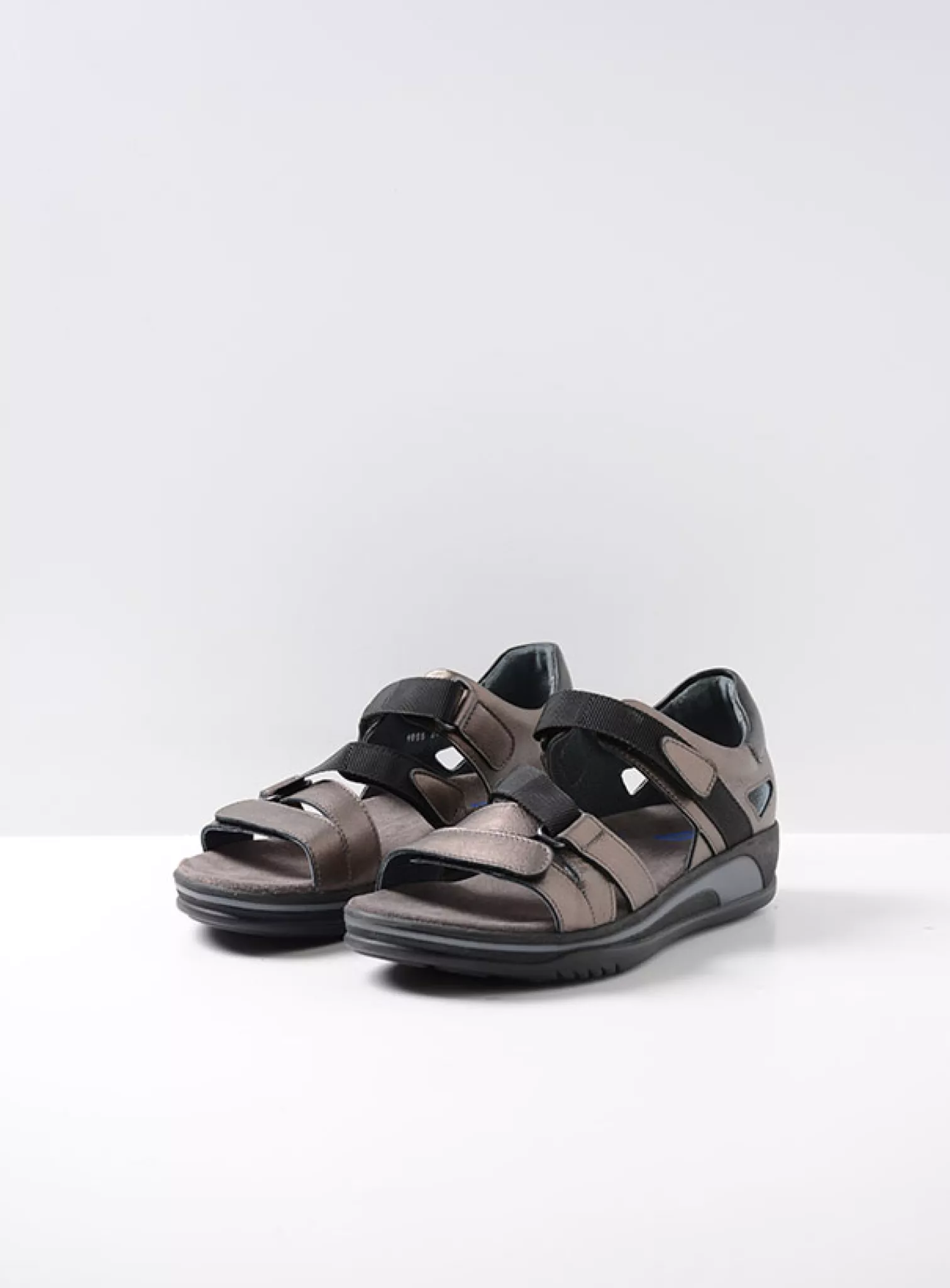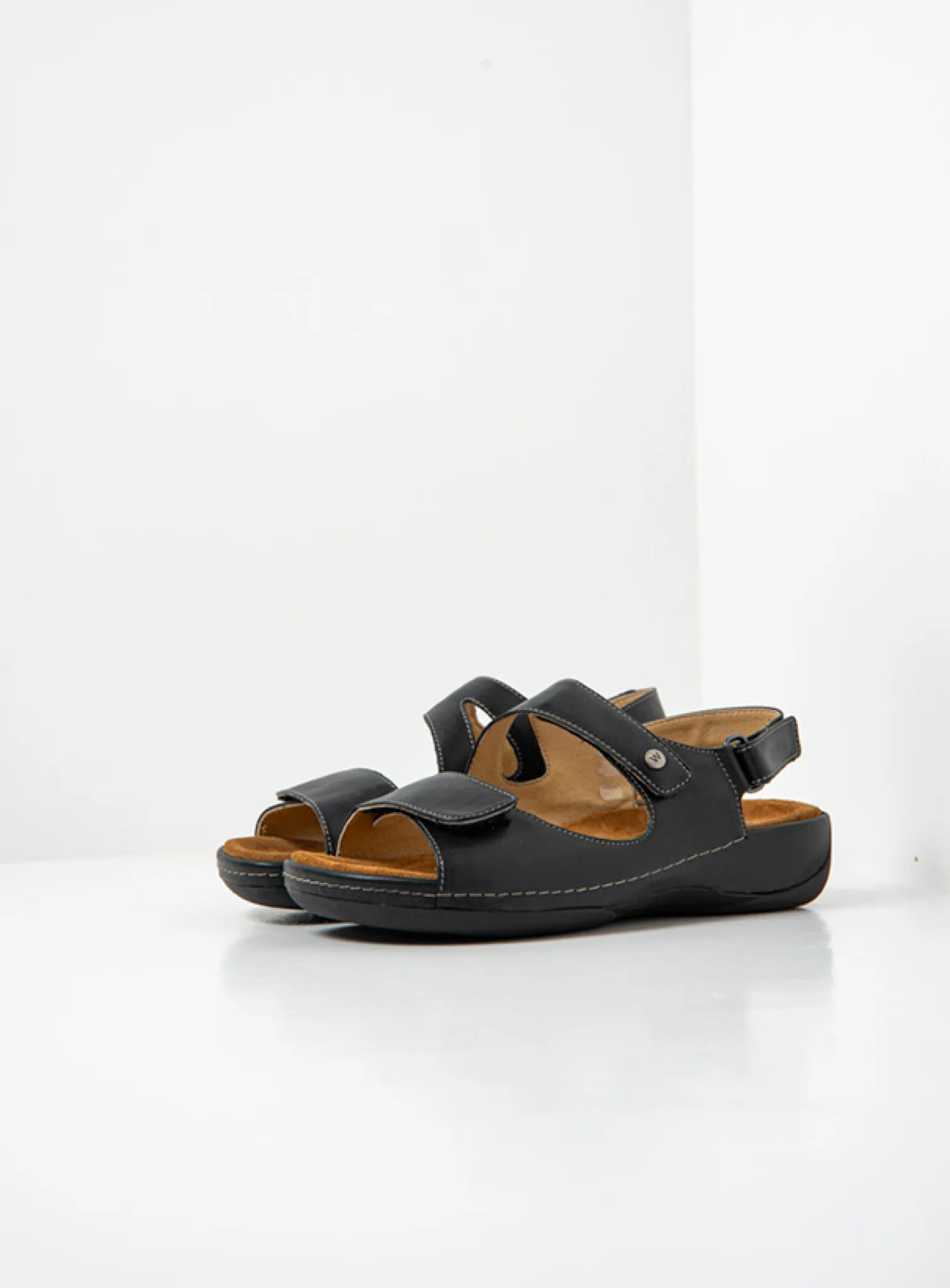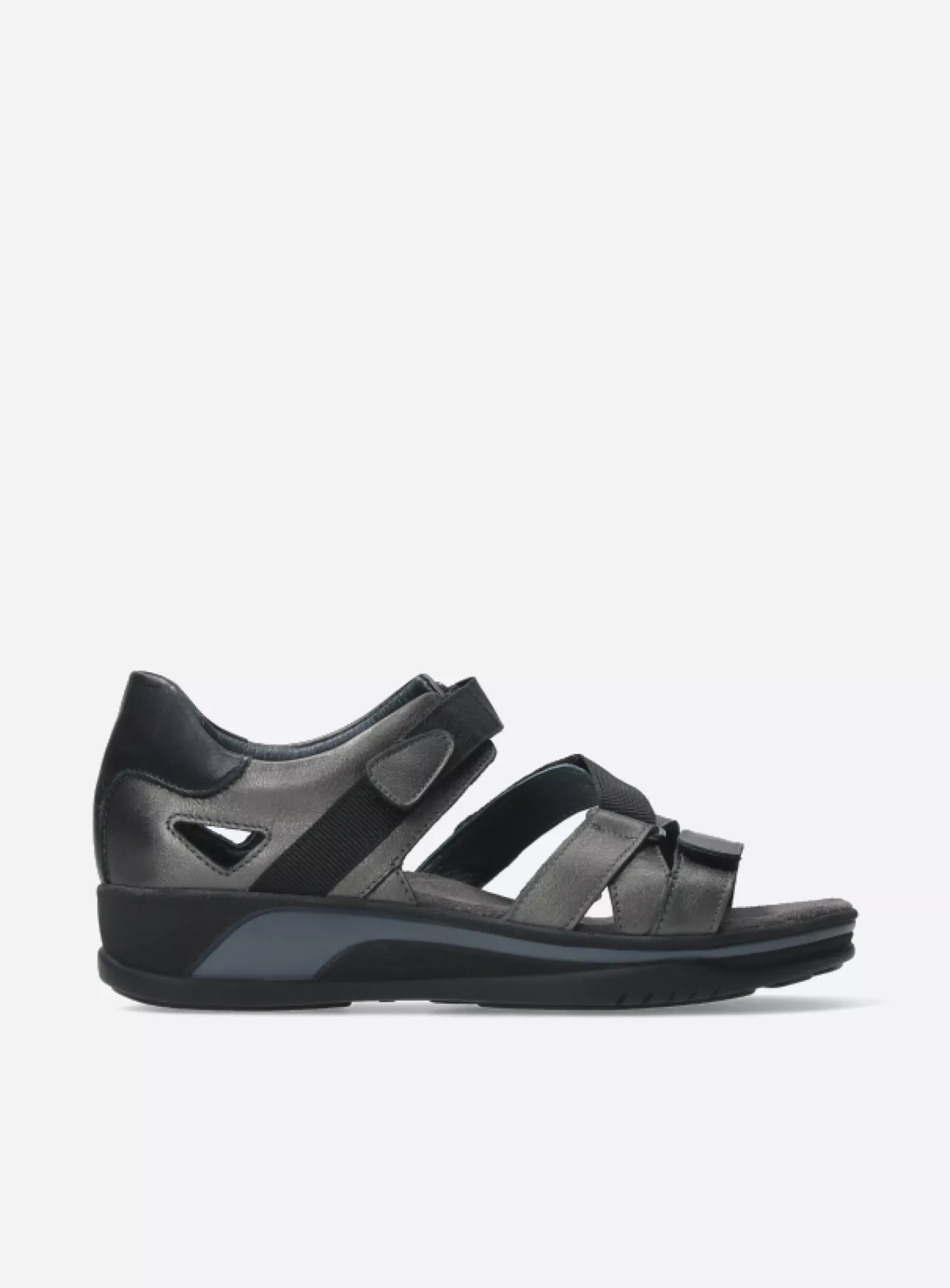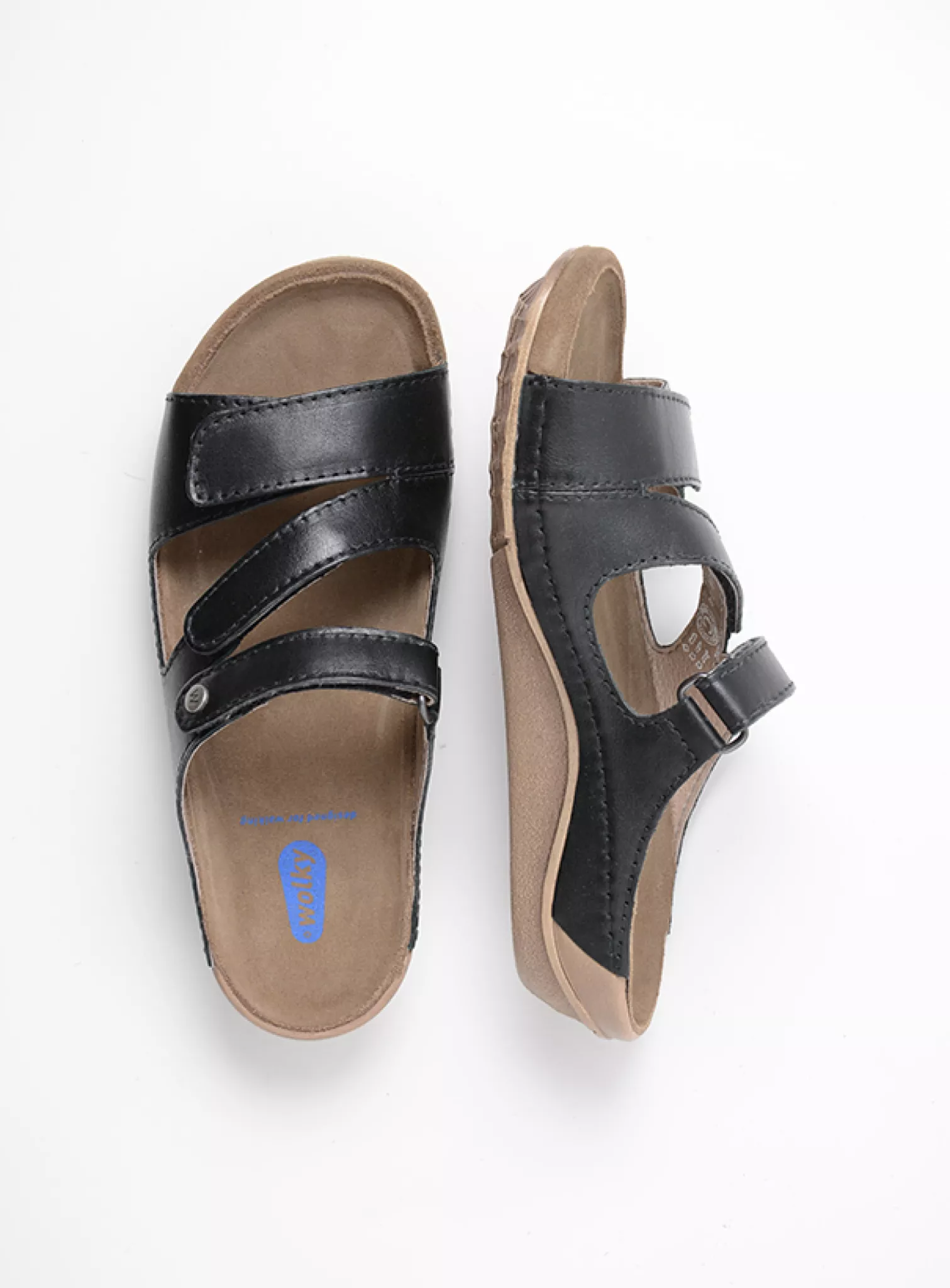 Wide fit adjustable sandal with fixed footbed