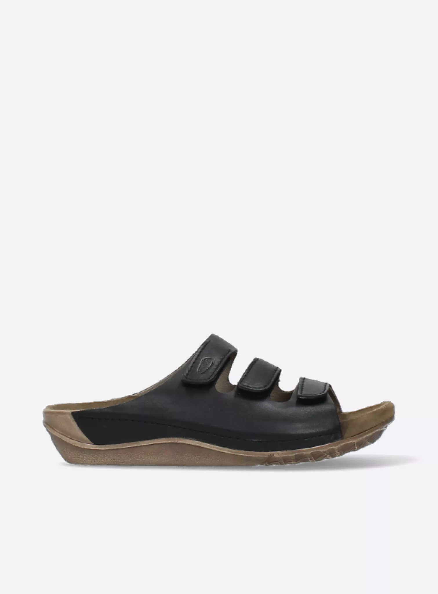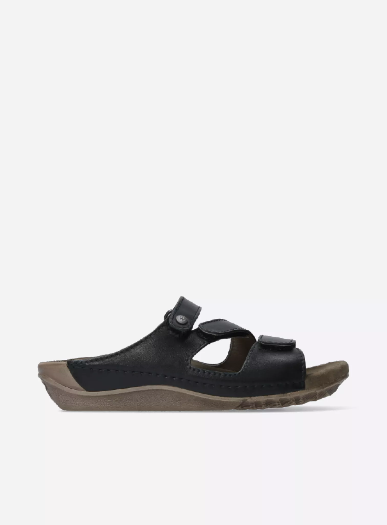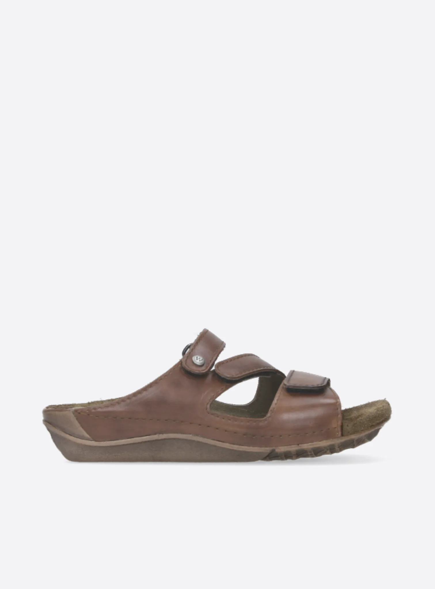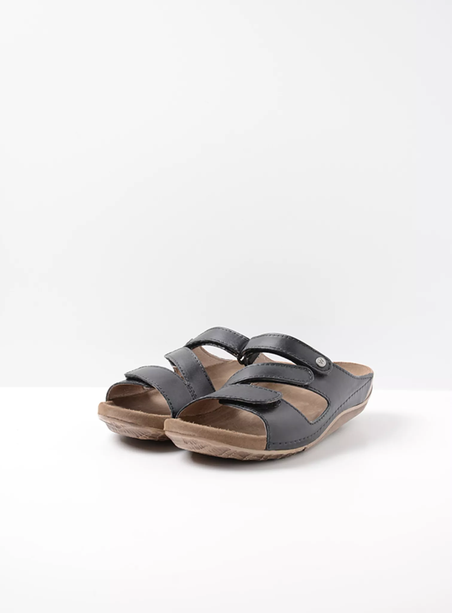 Slide sandal with velcro straps and fixed footbed