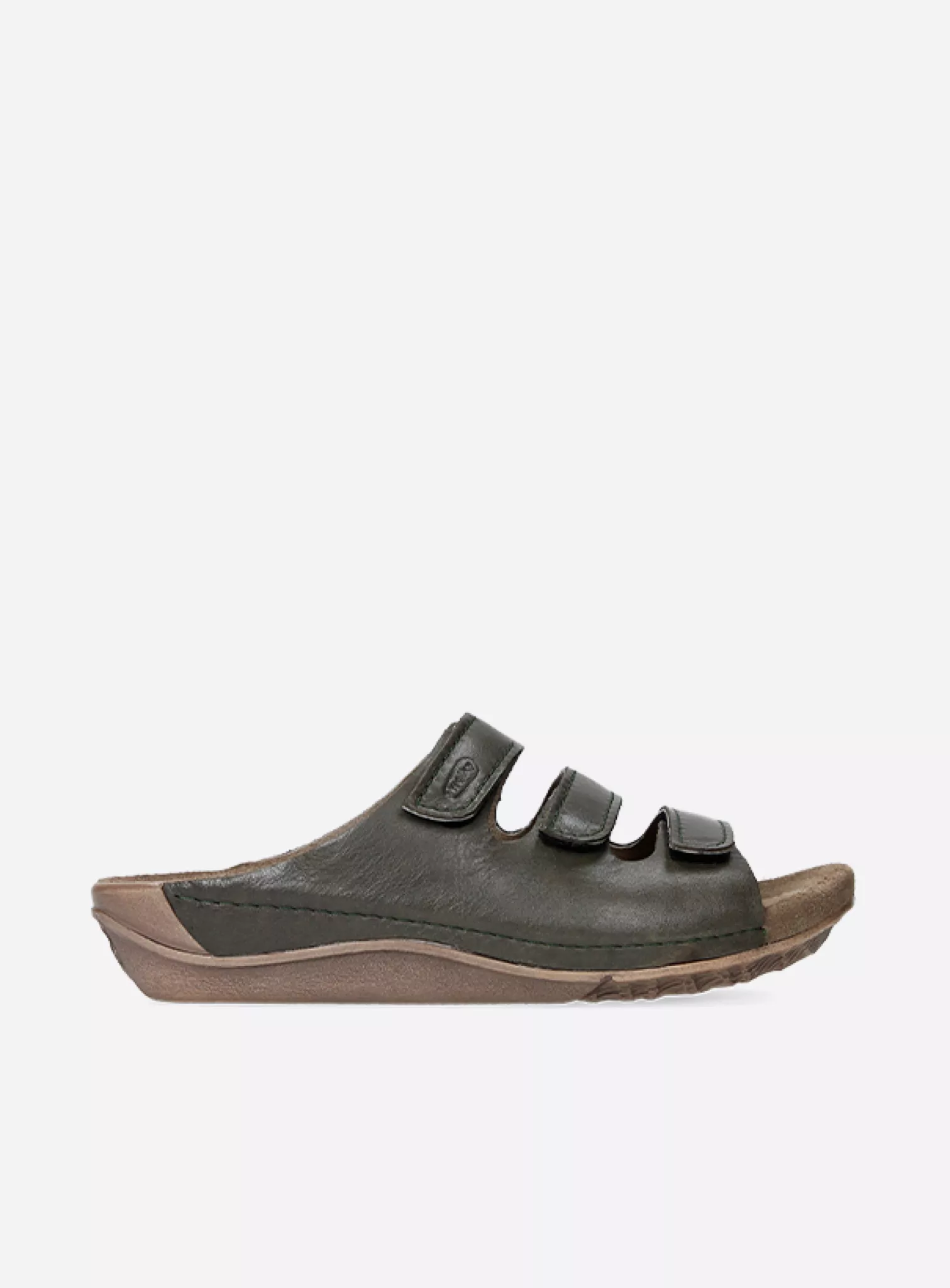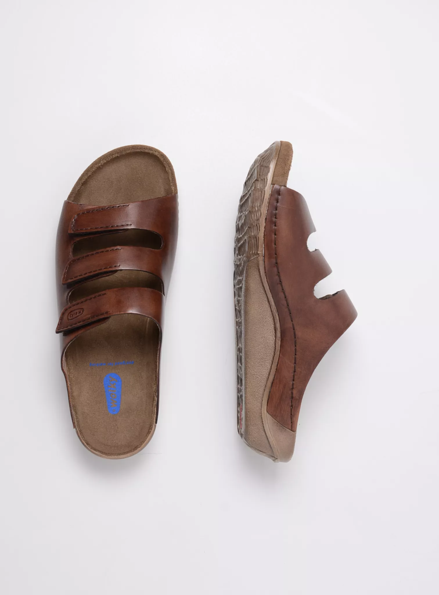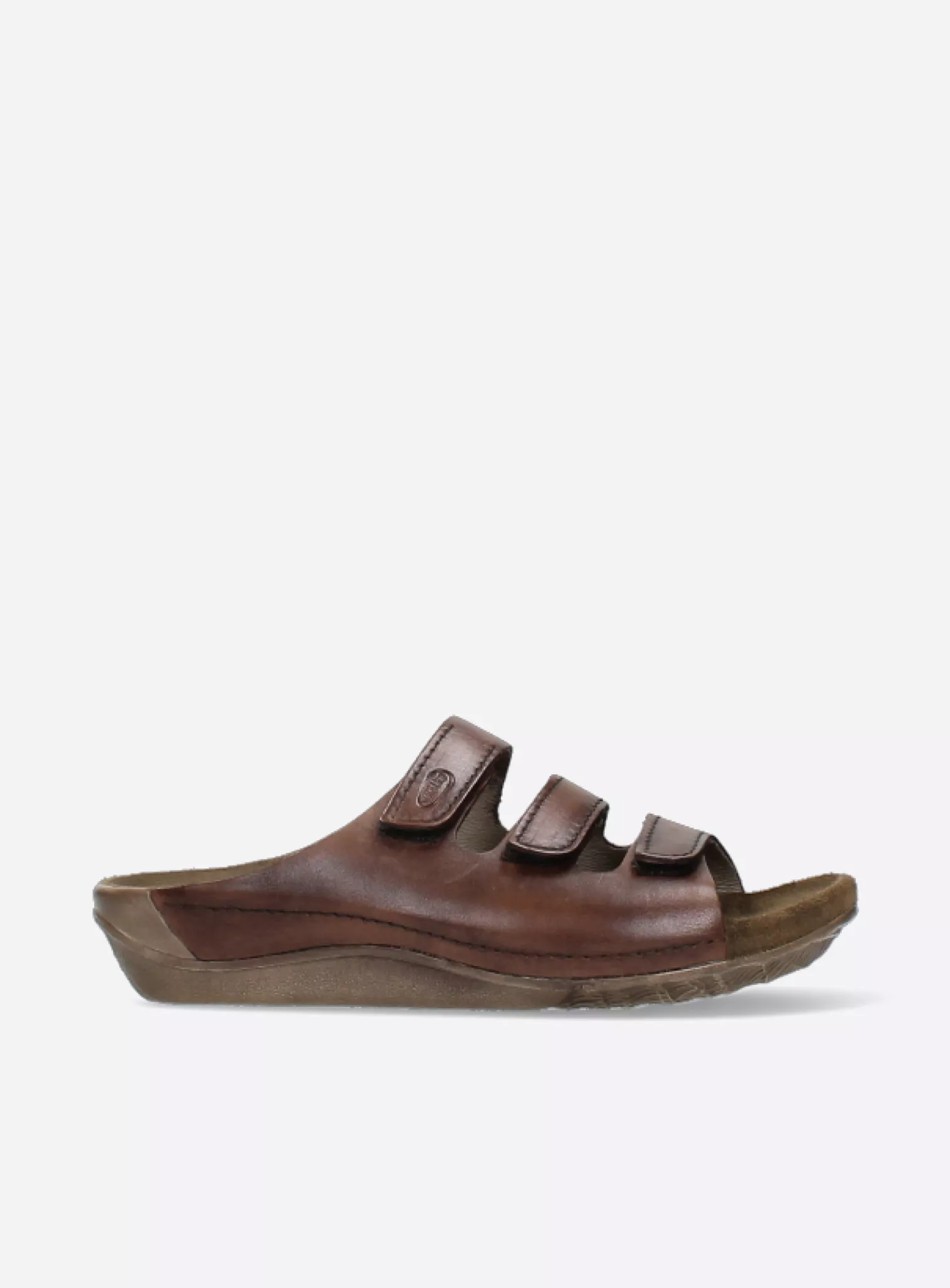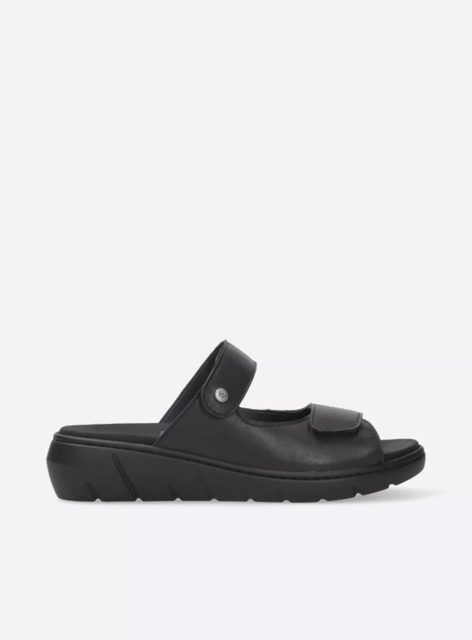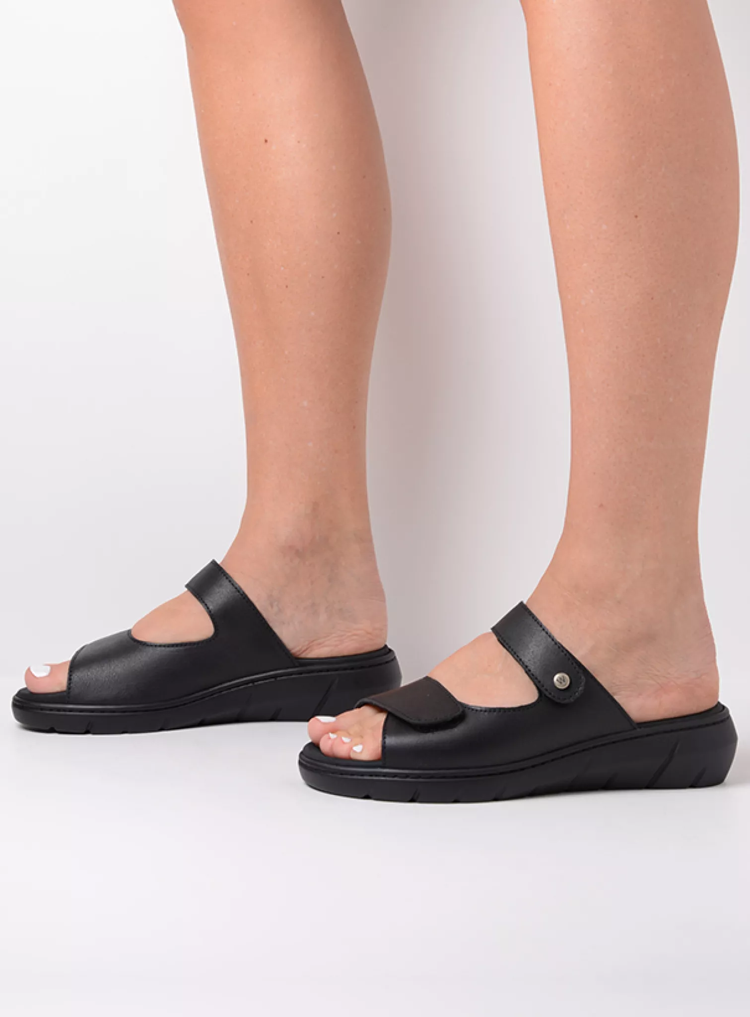 Slide sandal with velcro straps and fixed footbed