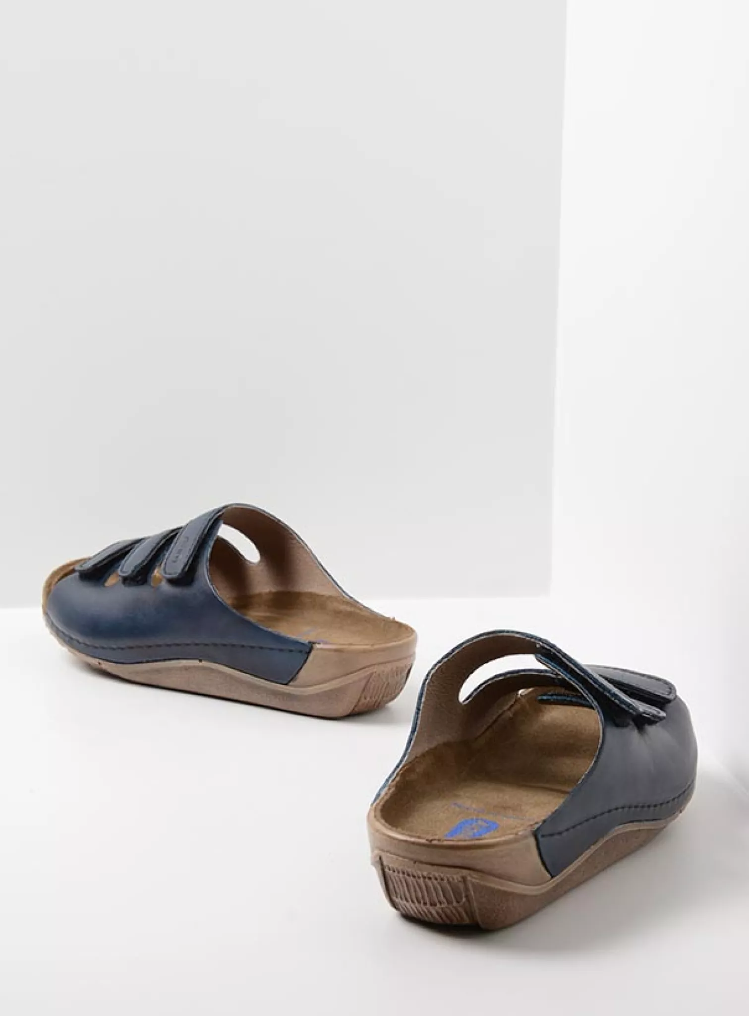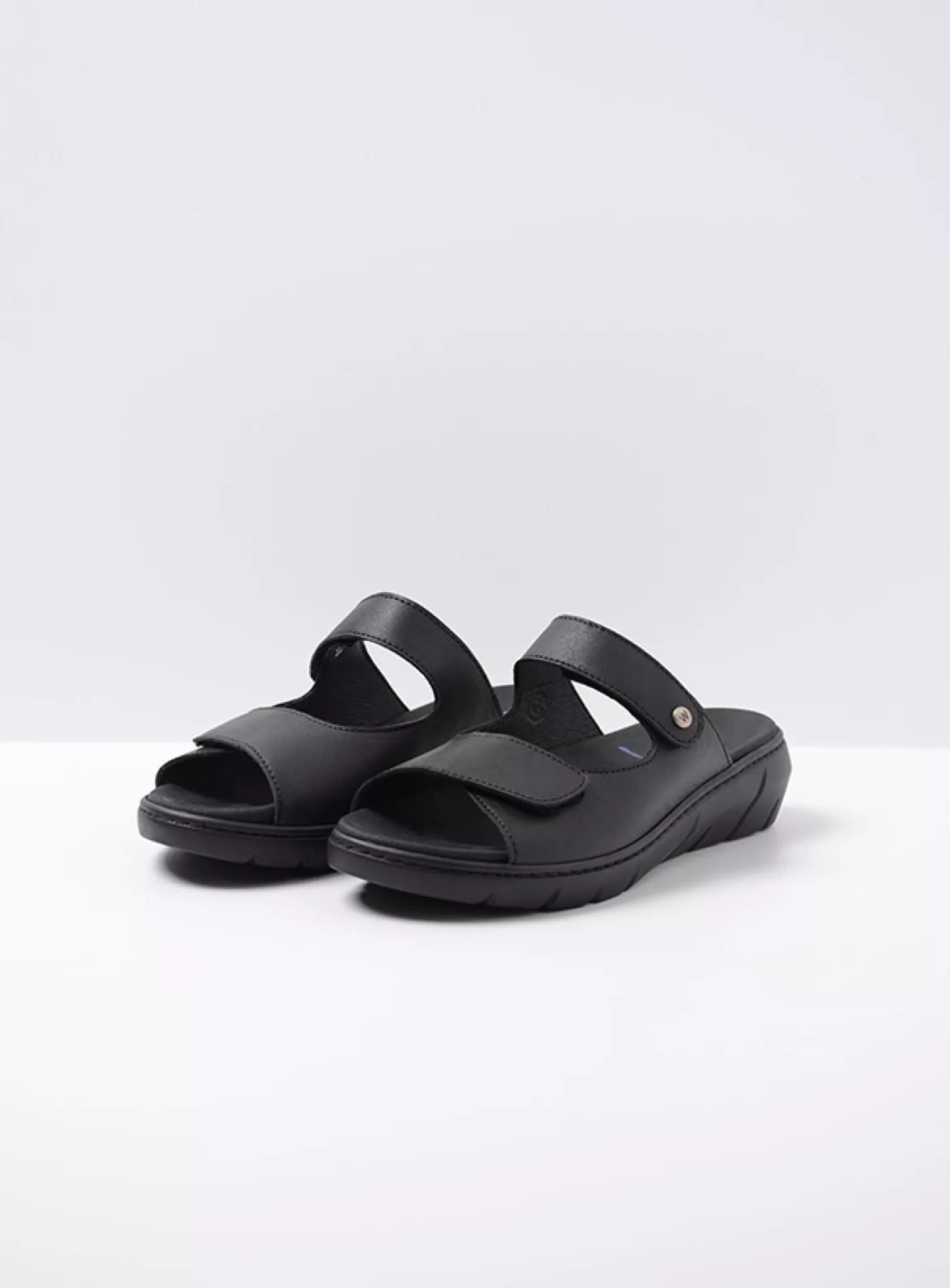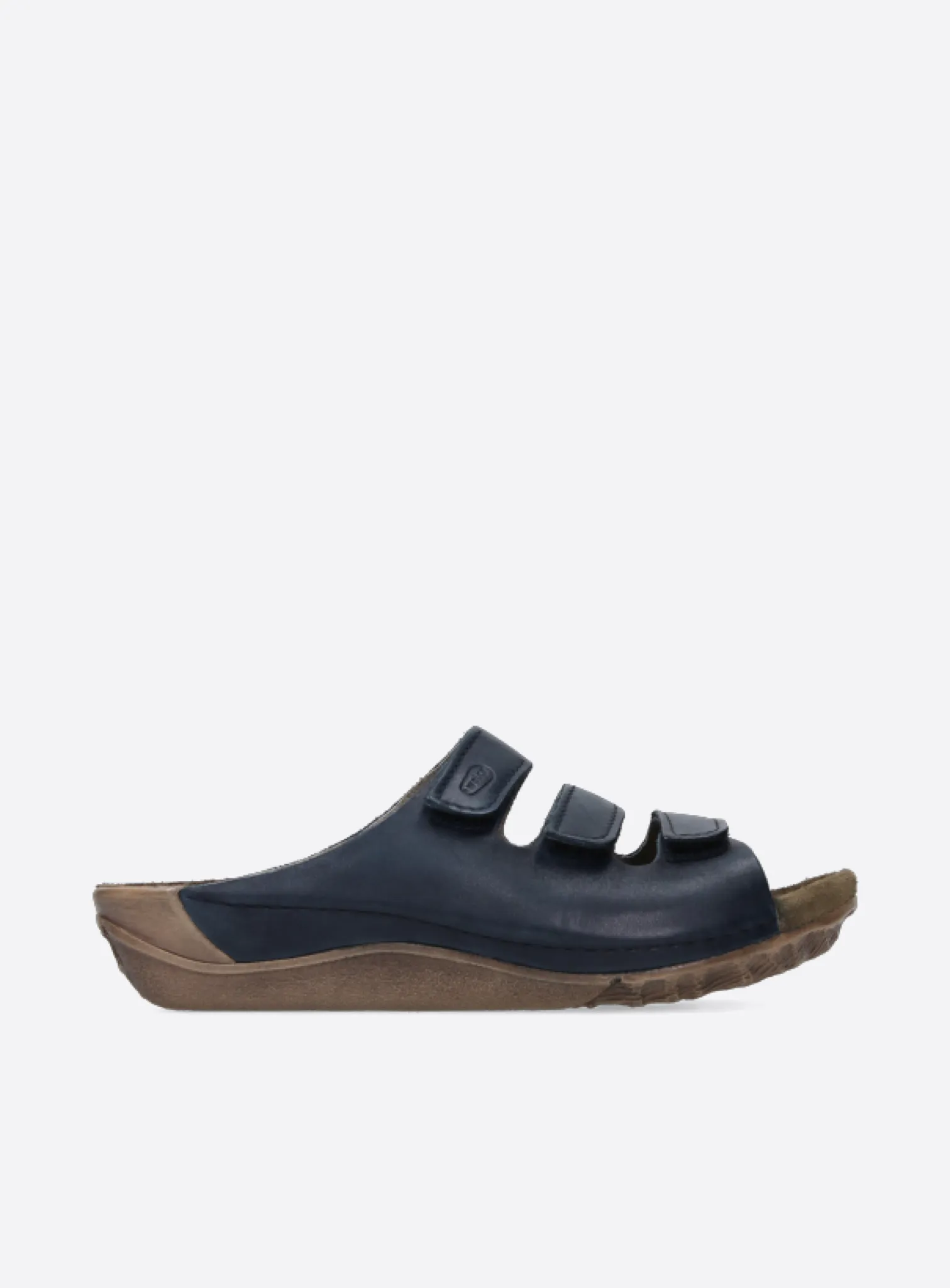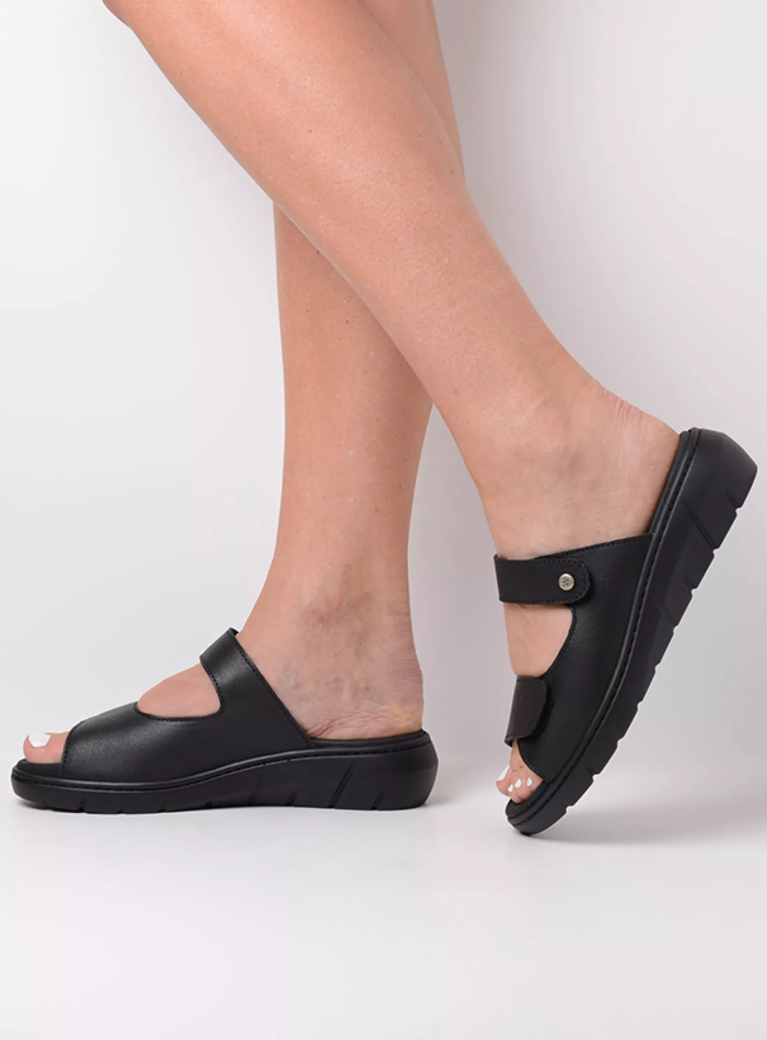 Slide sandal with velcro straps and fixed footbed