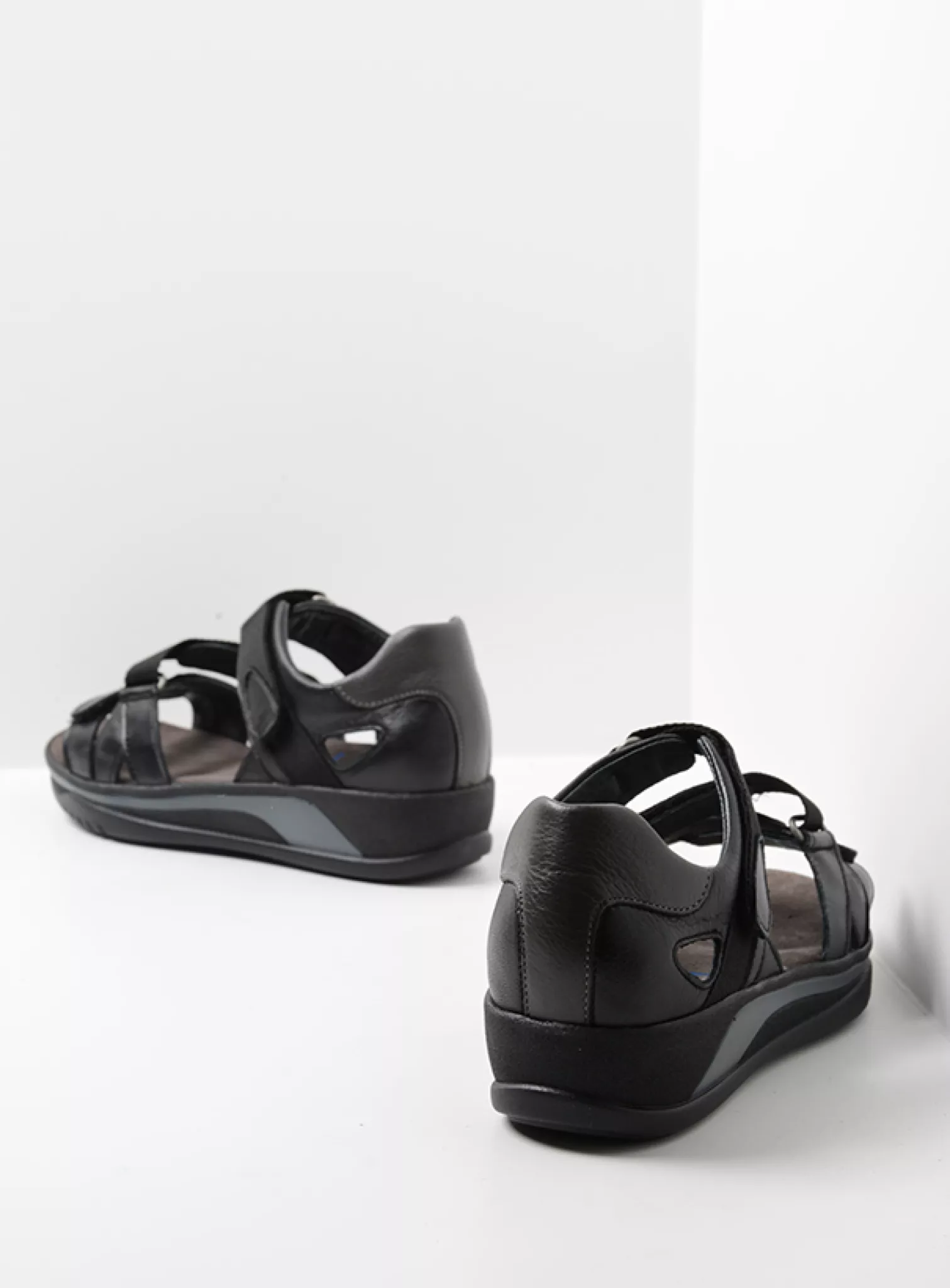 Adjustable wide fit sandal with fixed footbed